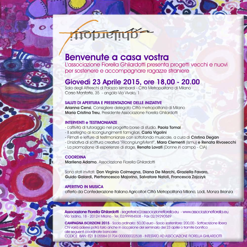 Giovedì 23 aprile a Milano, presentazione di "Benvenute a casa vostra", una serie di progetti e borse di studio per ragazze straniere a cura dell'Associazione Fiorella Ghilardotti.