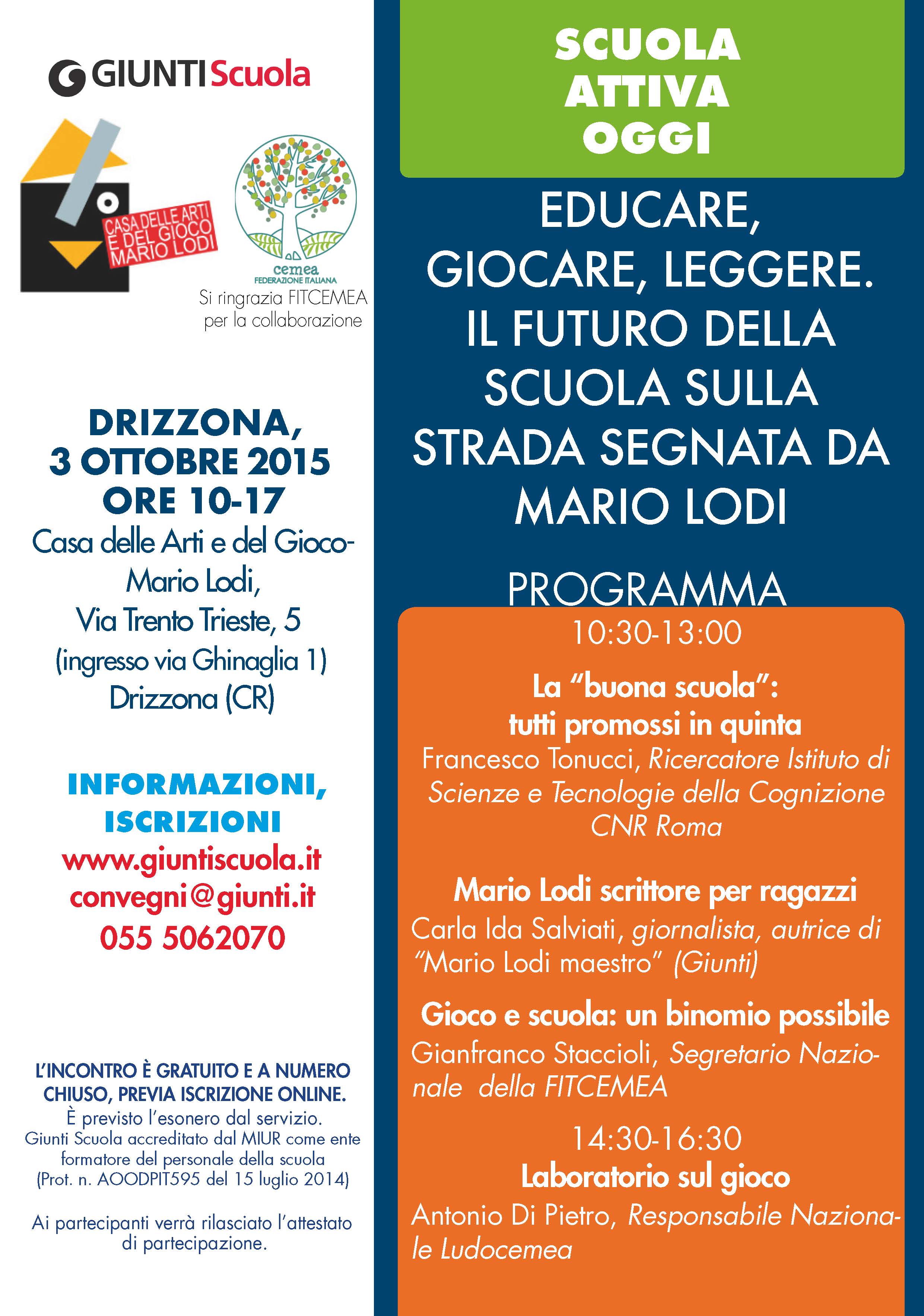 Una “buona scuola” promuove tutti in quinta? Come si scrive e si sceglie un buon libro per ragazzi? Gioco e didattica sono alleati per davvero o per finta? Se ne parla il 3 ottobre a Drizzona, riflettendo sul pensiero e il fare scuola di Mario Lodi.