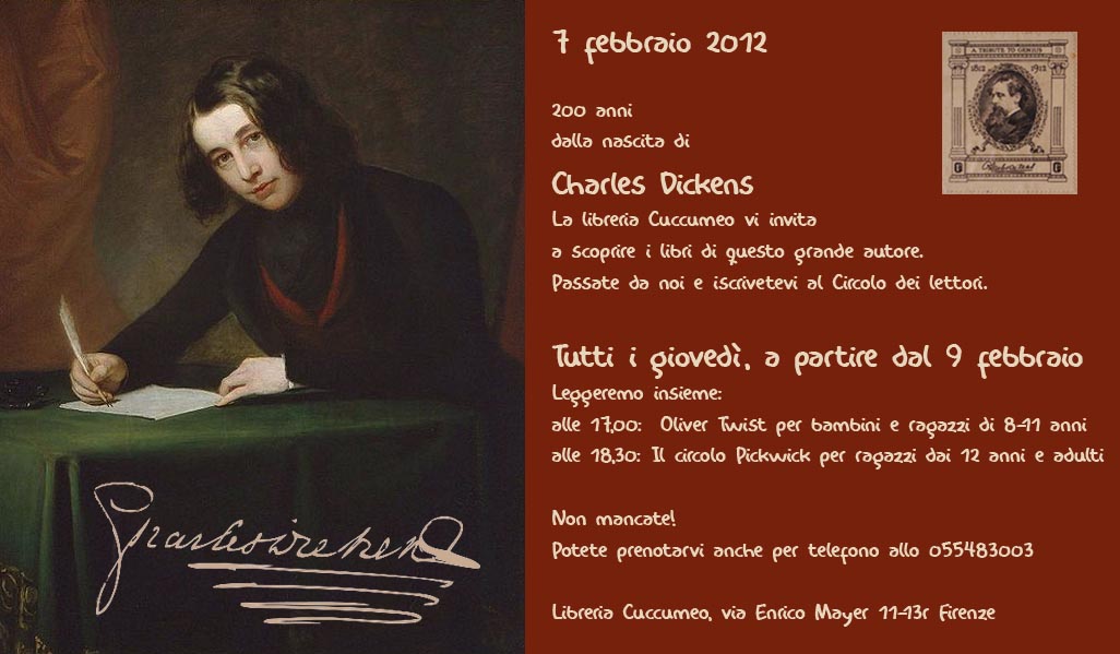 A partire dal 9 febbraio, in occasione del bicentenario della nascita di Charles Dickens, la Libreria Cuccumeo (via Enrico Mayer 11/13, r) organizza un ciclo di letture da "Oliver Twist" e da "Il circolo Pickwick".