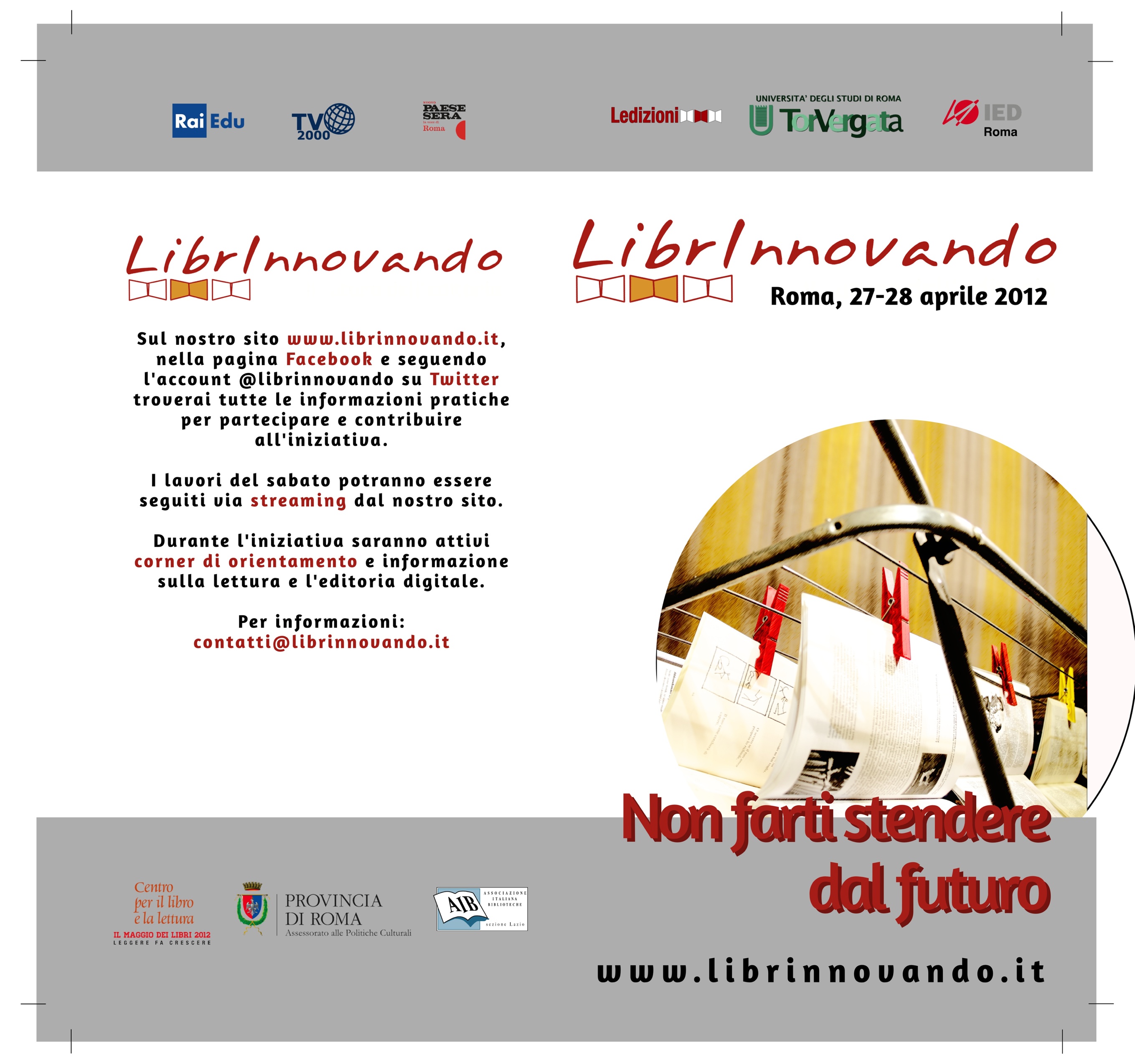 - Nel pomeriggio, avranno luogo presso l’Università di Tor Vergata due workshop su “Come si produce un ebook” e sui “Contratti per l’editoria digitale”.