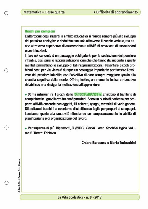 Direttore: Silvana Loiero Comitato scientifico: Bruno D’Amore, Università Distrital di Bogotá (coordinamento); Martha Isabel Fandiño Pinilla, NRD (Nucleo di Ricerca in Didattica della Matematica), Università di Bologna; Graziella Favaro, esperta di educazione interculturale, fondatrice del Centro COME (MI); Ivo Mattozzi, Prof. a contratto nella Libera Università di Bolzano; Maria Cristina Peccianti, esperta in glottodidattica e Italiano L2; Tiziano Pera, Gruppo di Ricerca in Didattica delle Scienze, Università di Torino; Gianfranco Staccioli, Università di Firenze e Segretario nazionale della Federazione italiana dei Cemea; Paola Traverso, esperta in glottodidattica e formatrice EFL (English as a Foreign Language) Direttore editoriale: Tullia Colombo Caporedattore: Emilia Passaponti Redazione: Sara Pratesi (coordinamento), Elena Becattini; collaborazione di: Valentina Cammilli, Melania Parisi Redazione on line: Elena Frontaloni Segreteria di redazione: Simona Cencetti, Chiara Tacconi Progetto grafico: Daniela Romeo, Ardesia di Barbara Barucci Direttore responsabile: Claudio Pescio Pubblicazione autorizzata dal Tribunale di Firenze, n. 1496 del 5-9-1962. Iva assolta dall’editore a norma dell’art. 74/DPR 633 del 26-10-72. Poste Italiane S.p.a. - Spedizione in A.P. - D.L. 353/2003 (conv. in L. 27/02/2004 n° 46) art. 1, comma 1, DCB-C1- FI. Direzione e Redazione Giunti Scuola s.r.l., Via Fra’ Paolo Sarpi 7a, 50136 Firenze Tel. 055 5062367 – Fax 055 5062351 – e-mail: vitascol@giunti.it Amministrazione: Giunti Editore S.p.A., via Bolognese 165, 50139 Firenze Codice Fiscale 80009810484, Partita IVA 03314600481