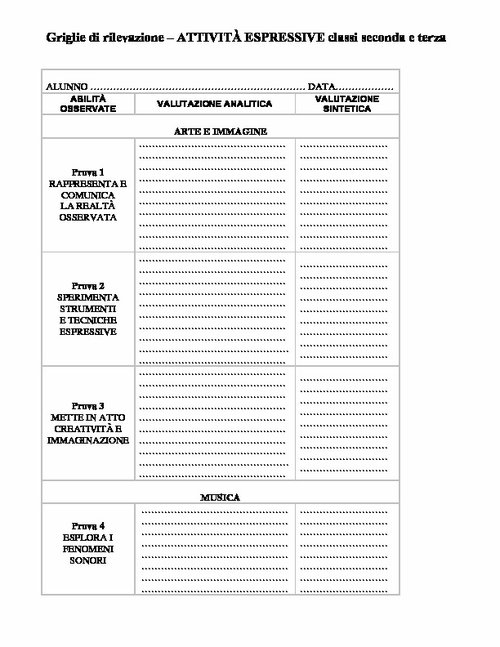 Griglia di rilevazione di Attività Espressive classi 2-3