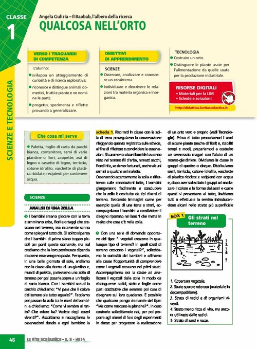 1 percorso didattico per: osservare, analizzare e conoscere un ecosistema; individuare e descrivere le relazioni tra materia organica e inorganica; costruire un orto; distinguere le piante usate per l’alimentazione da quelle usate per la produzione industriale.