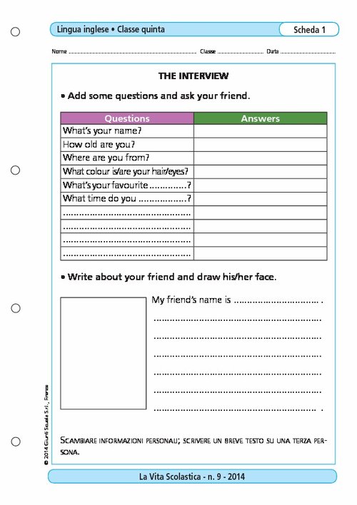 scheda didattica | Lingua inglese | Classe 5ª